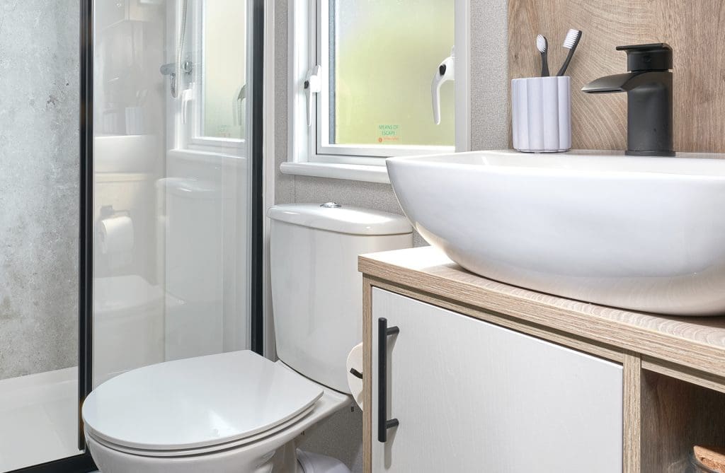 The bedrooms are well-equipped with great storage including a lift-up king-size bed in all 2-bed models, wardrobes, and TV points in both the master and one twin room. Pictures above the master bedroom add a homely touch. The bathrooms are also equally thought-out with extractor fans, hooks, a shaver socket and in the 39 x 12 2 bed model, a full all-in-one GPR bath for luxurious evenings in peace.