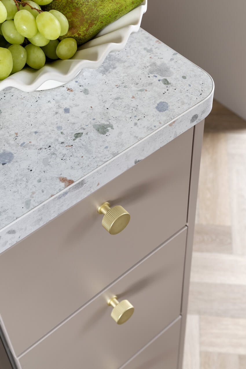 - Terrazzo Fresh 30mm laminate worktops with upstands and glass splashback