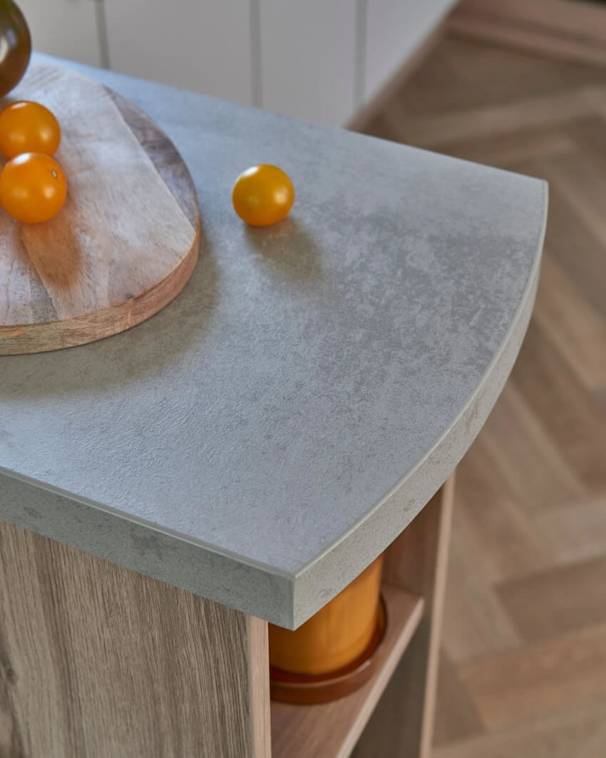 - Silver Chromix 30mm laminate worktops with matching upstands