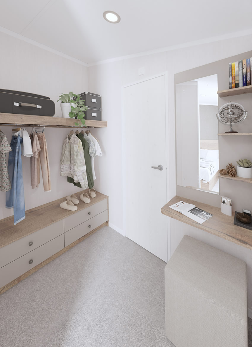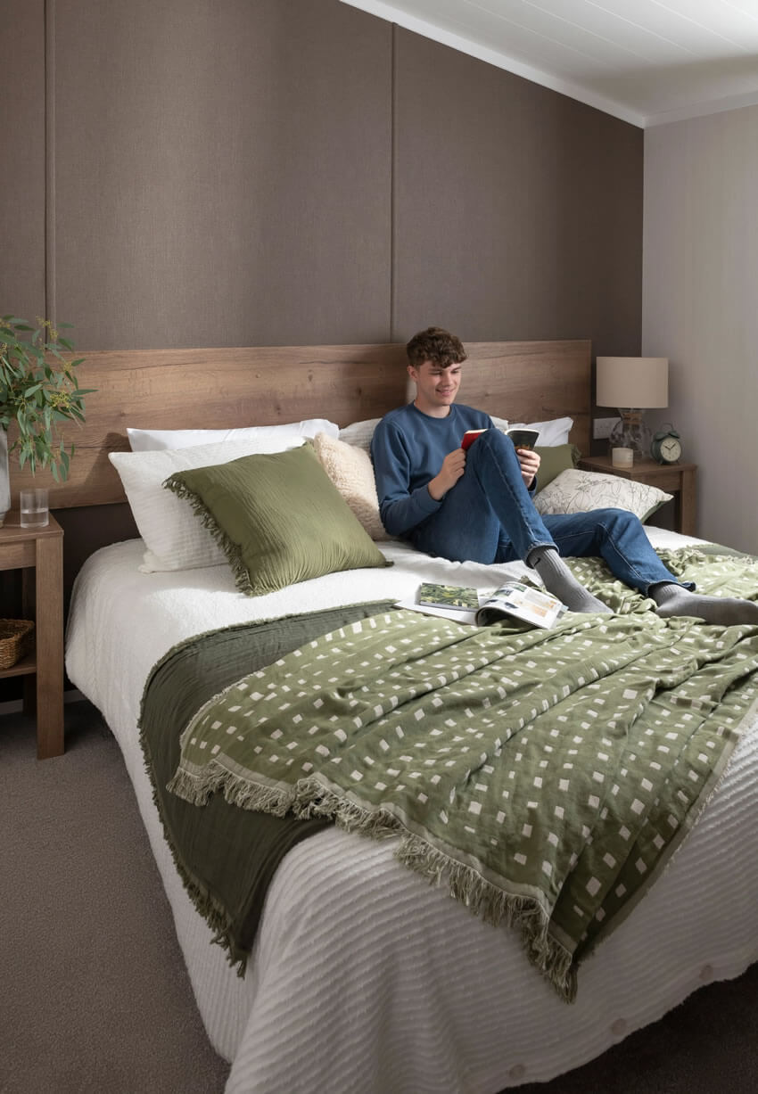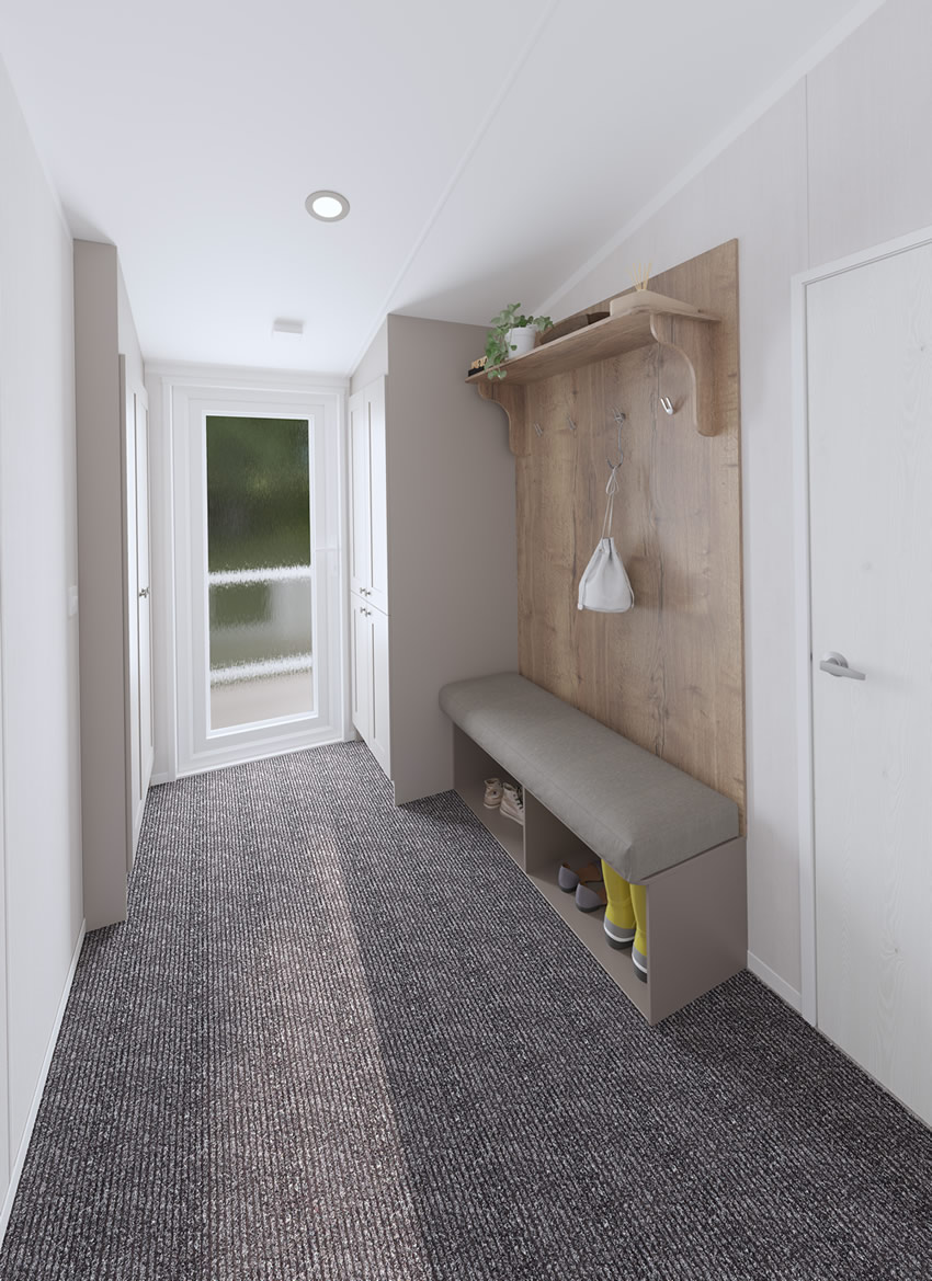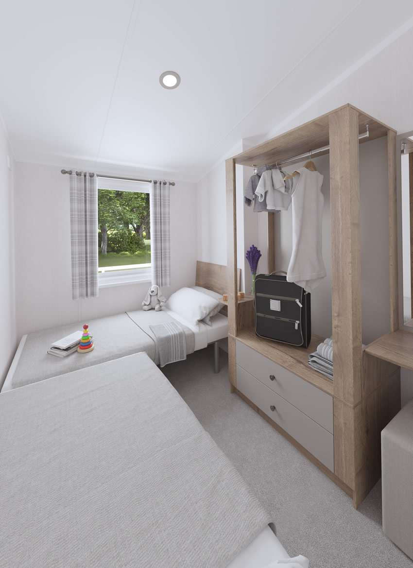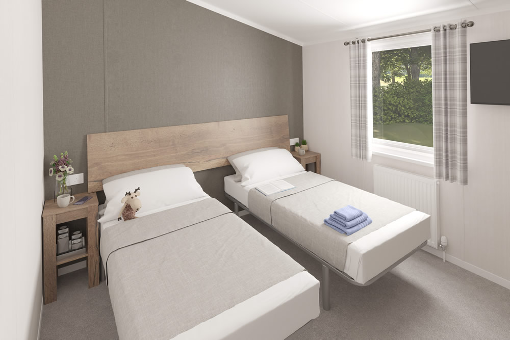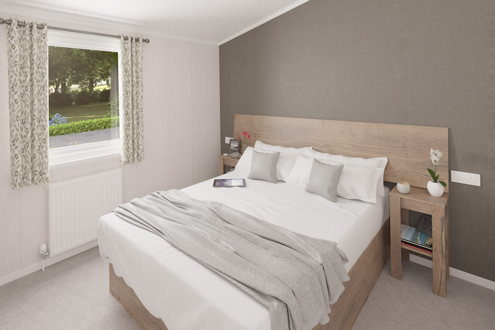 Thoughtfully designed throughout, the lodge includes a practical entrance utility area with coat hooks, bench seating and storage, as well as luxury carpeting, Provenza grey-toned vinyl flooring and soft LED lighting. The master bedroom features a king-size lift-up bed with a Duvalay Alba-Ortho mattress, a spacious walk-in dressing area and a elegant vanity zone. Twin bedrooms offer 3ft wide beds with the same premium mattresses along with the option of a zip-link queen bed in the 3-bed model.