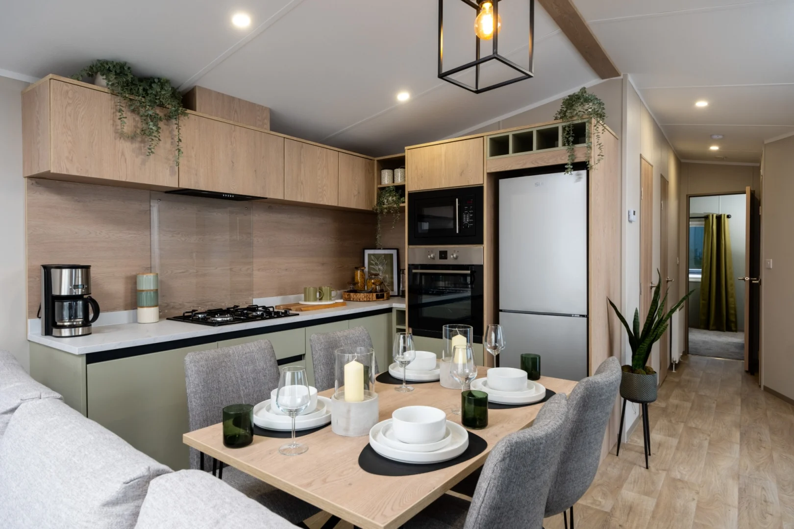 At the heart of the Arlington is its showstopping kitchen, featuring soft wood finishes, sleek black accents and smart storage for a space that's both functional and stylish. Flowing seamlessly into the lounge and dining areas, it's perfect for sociable evenings or slow mornings spent with a coffee and a view.