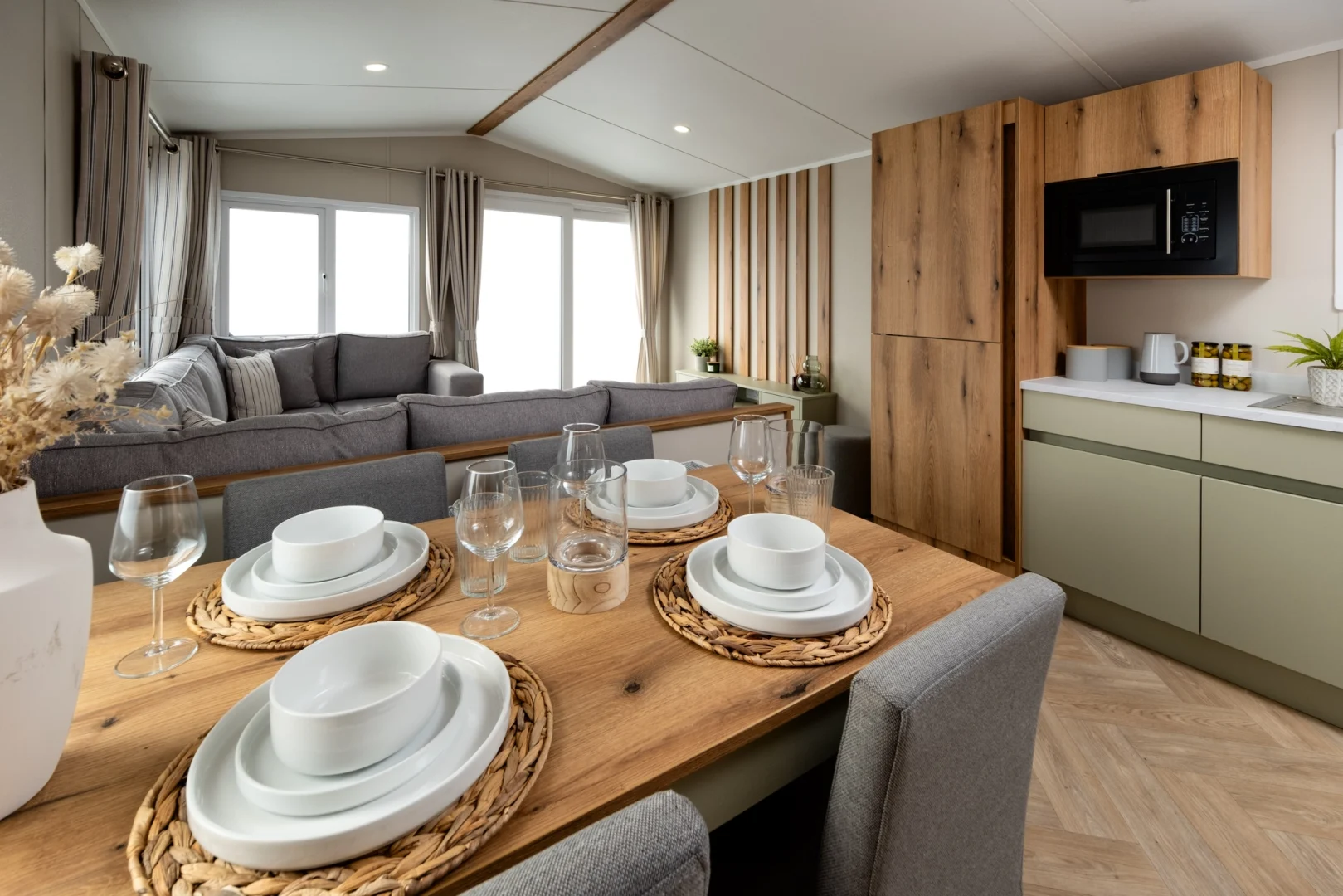 The 2026 Victory Ashberry is a true home-from-home, blending comfort, practicality and timeless design. With its warm sage tones, natural wood finishes and open-plan layout, this entry-level holiday home offers exceptional value without compromising on quality or style.