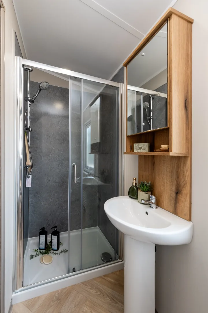 The bedrooms are designed for rest and relaxation, with a spacious master suite featuring a dressing area and clever storage, while the twin room offers a cosy retreat for guests or family. The bathrooms continue the Ashberry's blend of comfort and practicality complete with a sleek shower, wooden accents and contemporary fittings.