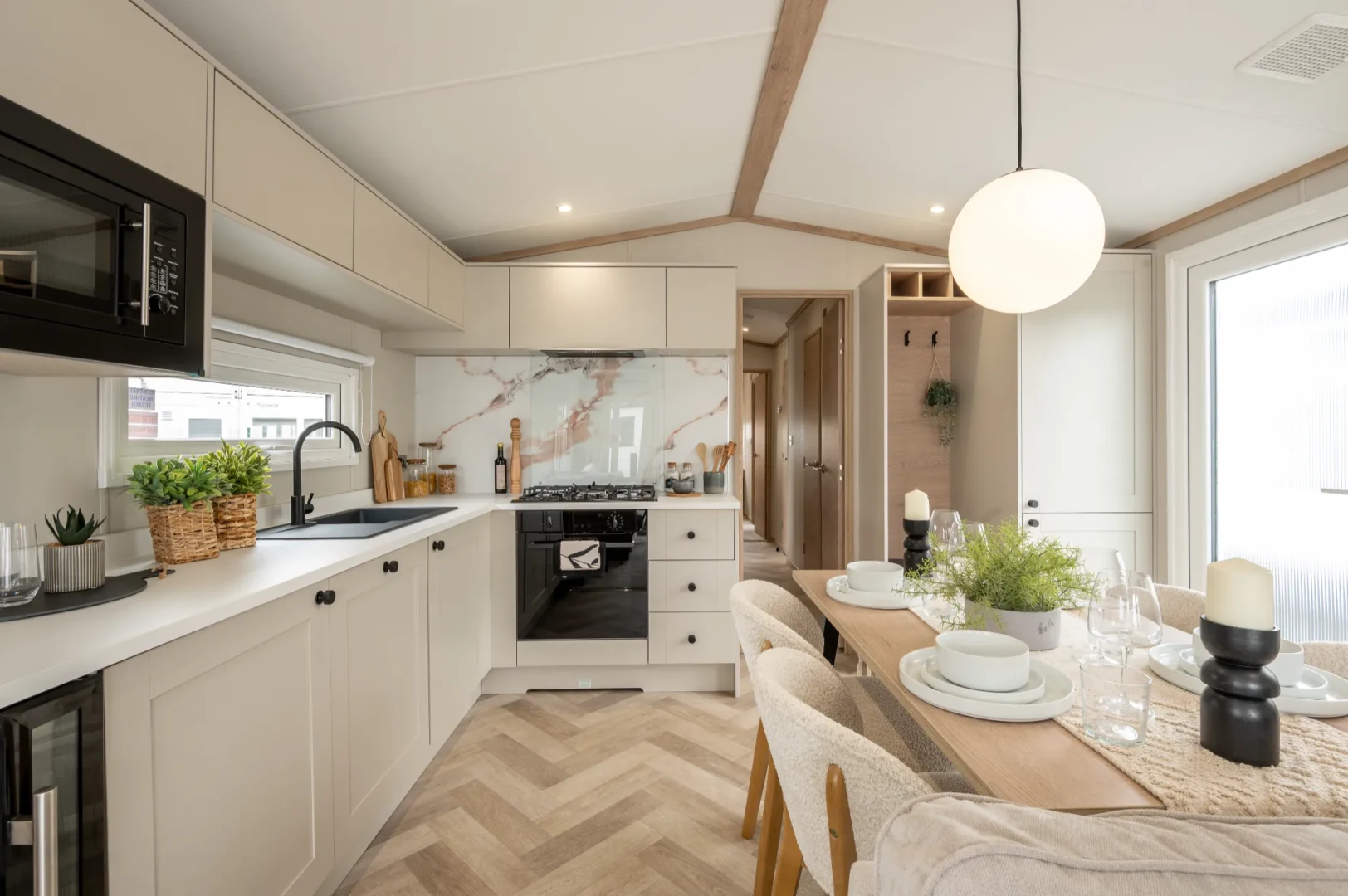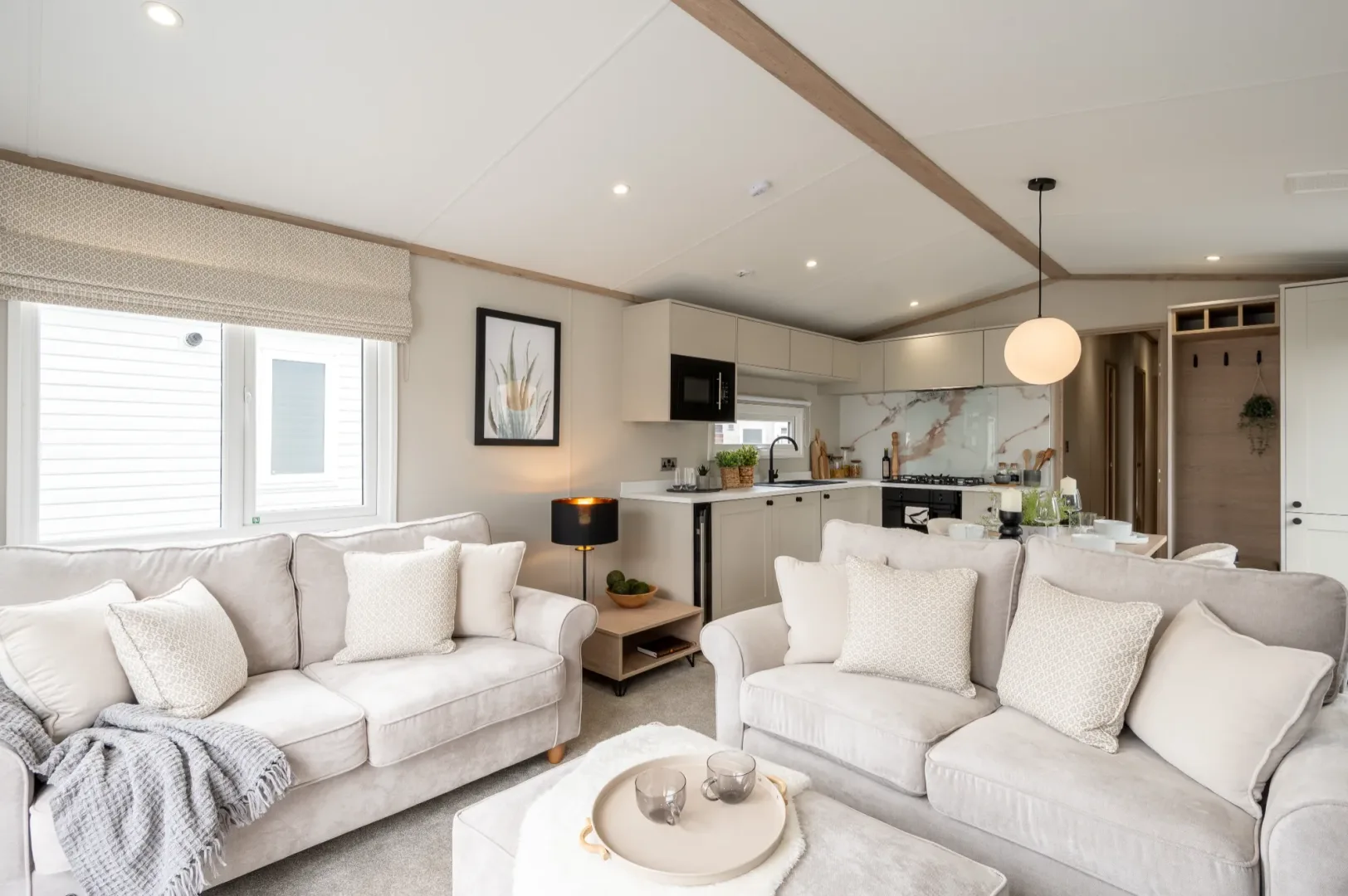 Step inside and you're greeted by a beautifully balanced interior, where neutral tones, warm wood accents and soft textures create an atmosphere of pure relaxation. From the moment you walk in, the Harraway feels open, light-filled and perfectly crafted for easy living.