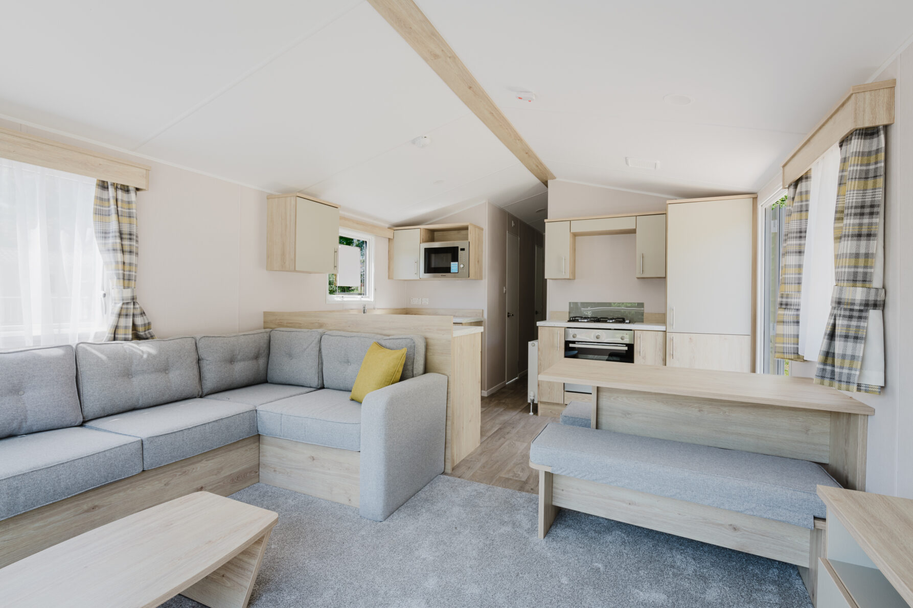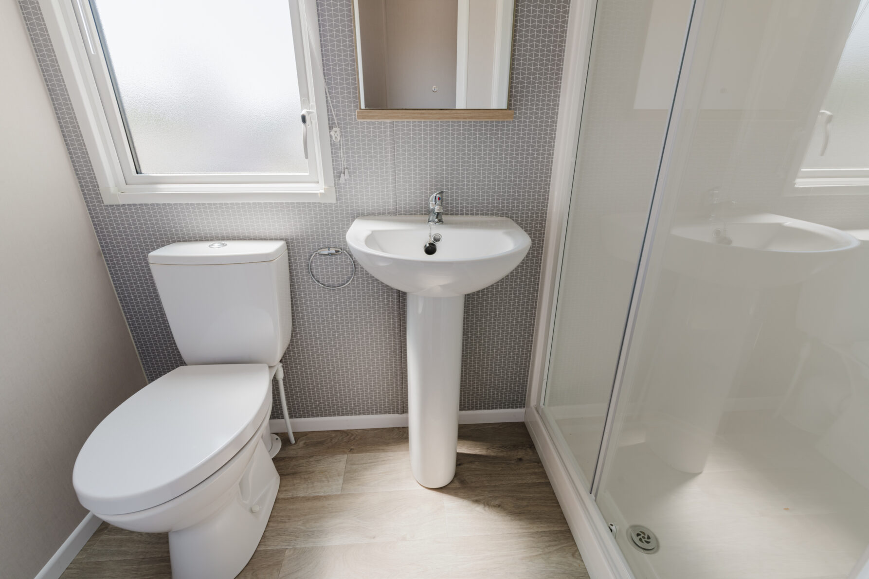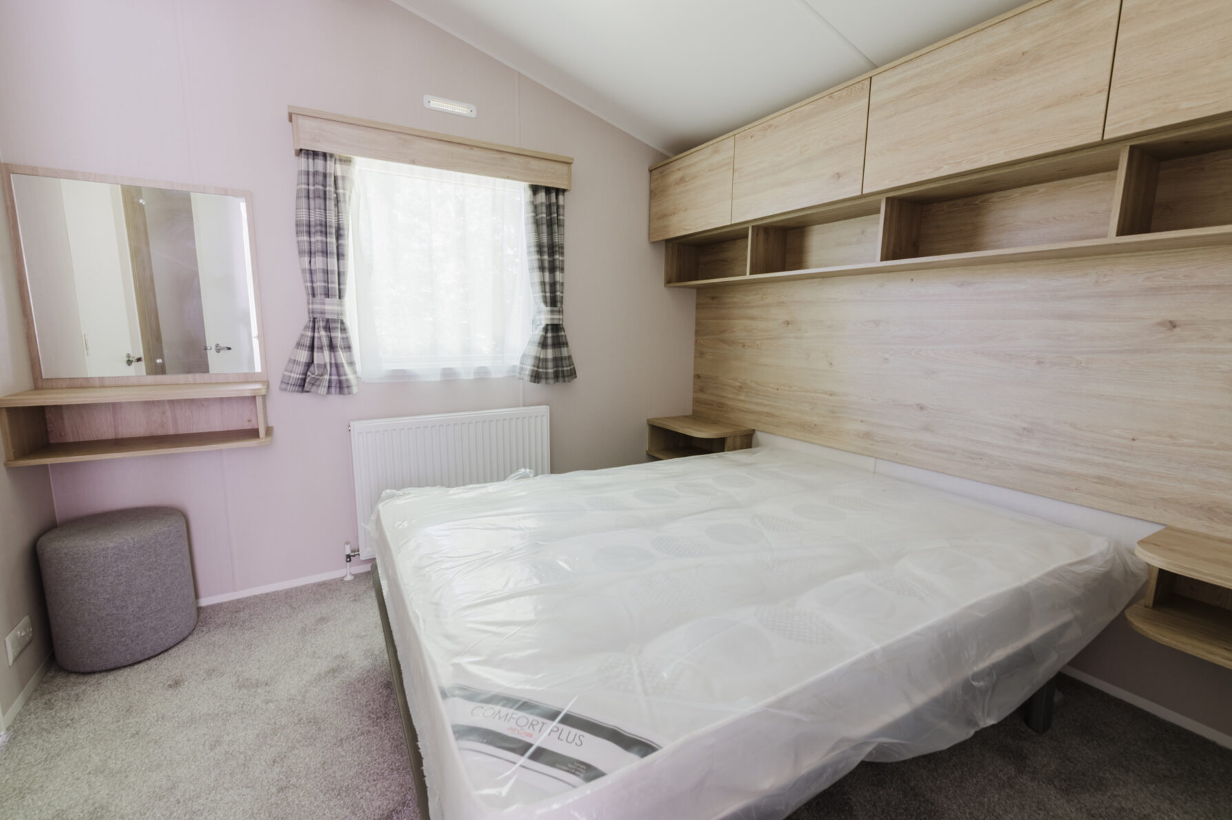 The holiday home has two bedrooms, the master bedroom has overhead storage and wardrobe space and an ensuite WC while bedroom two has two single beds, and there is a family shower room.