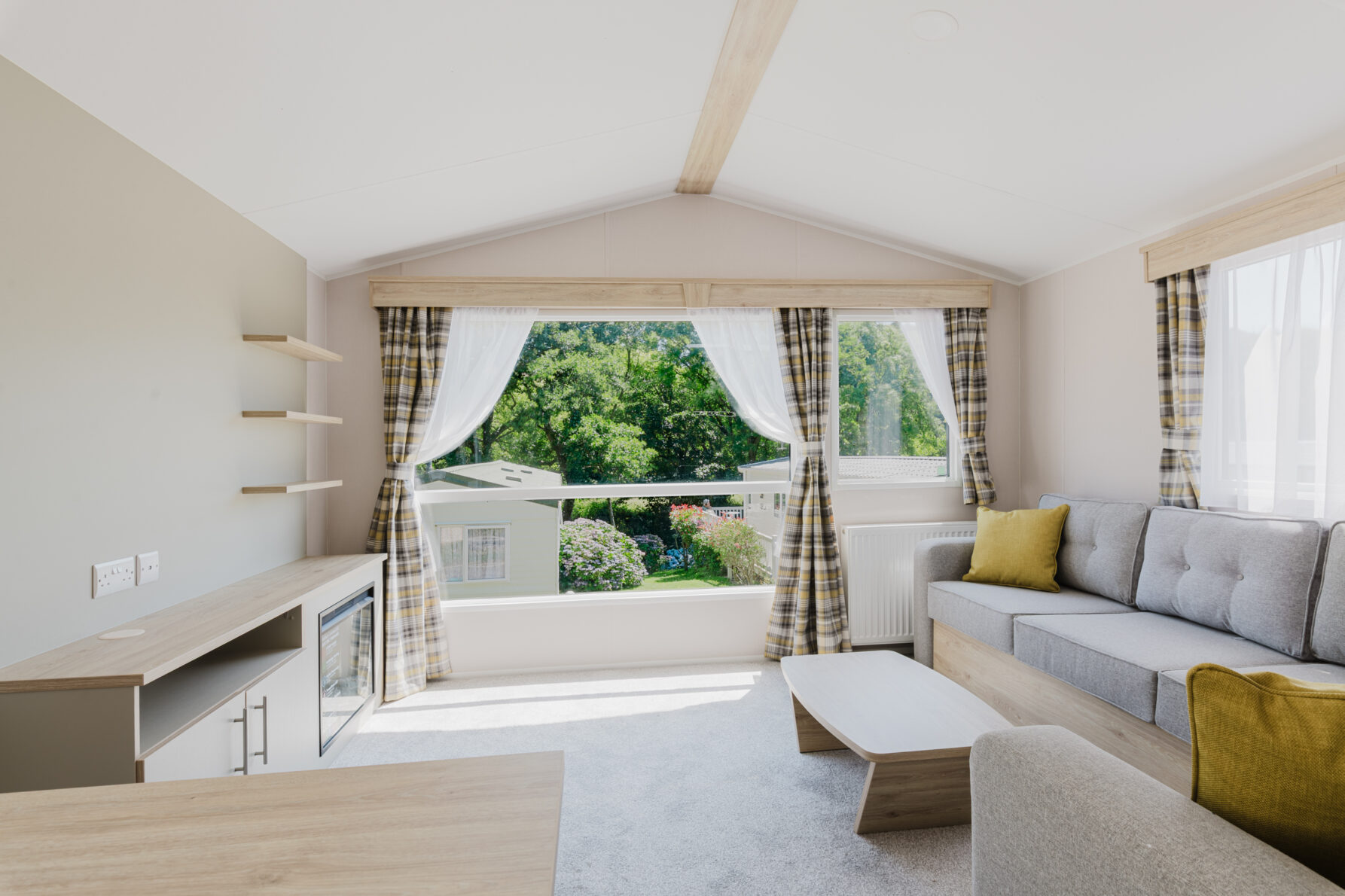A Comfortable and spacious lounge area with an L Shaped sofa and coffee table, along with fire place and space for the TV. Relax and enjoy the surrounding hills while deciding on your next adventure.