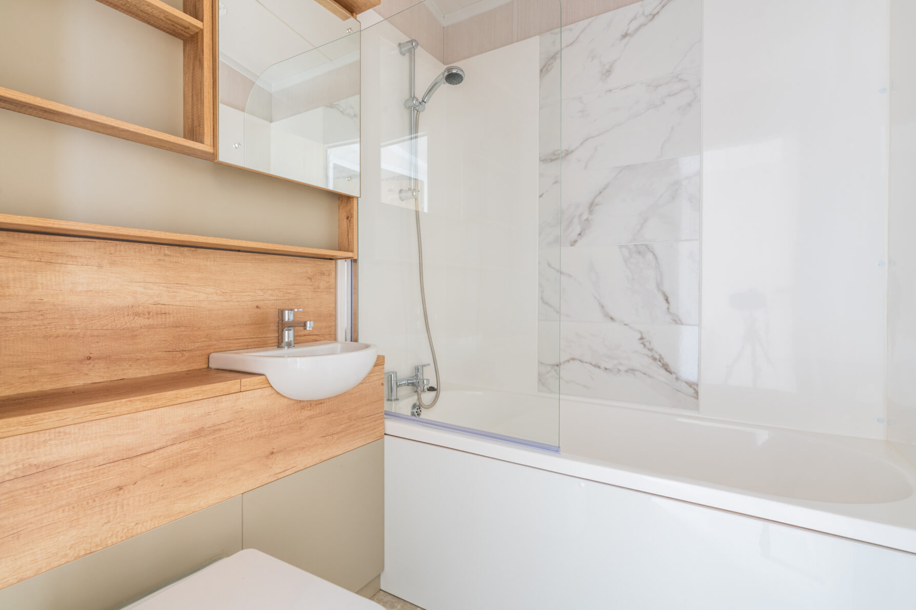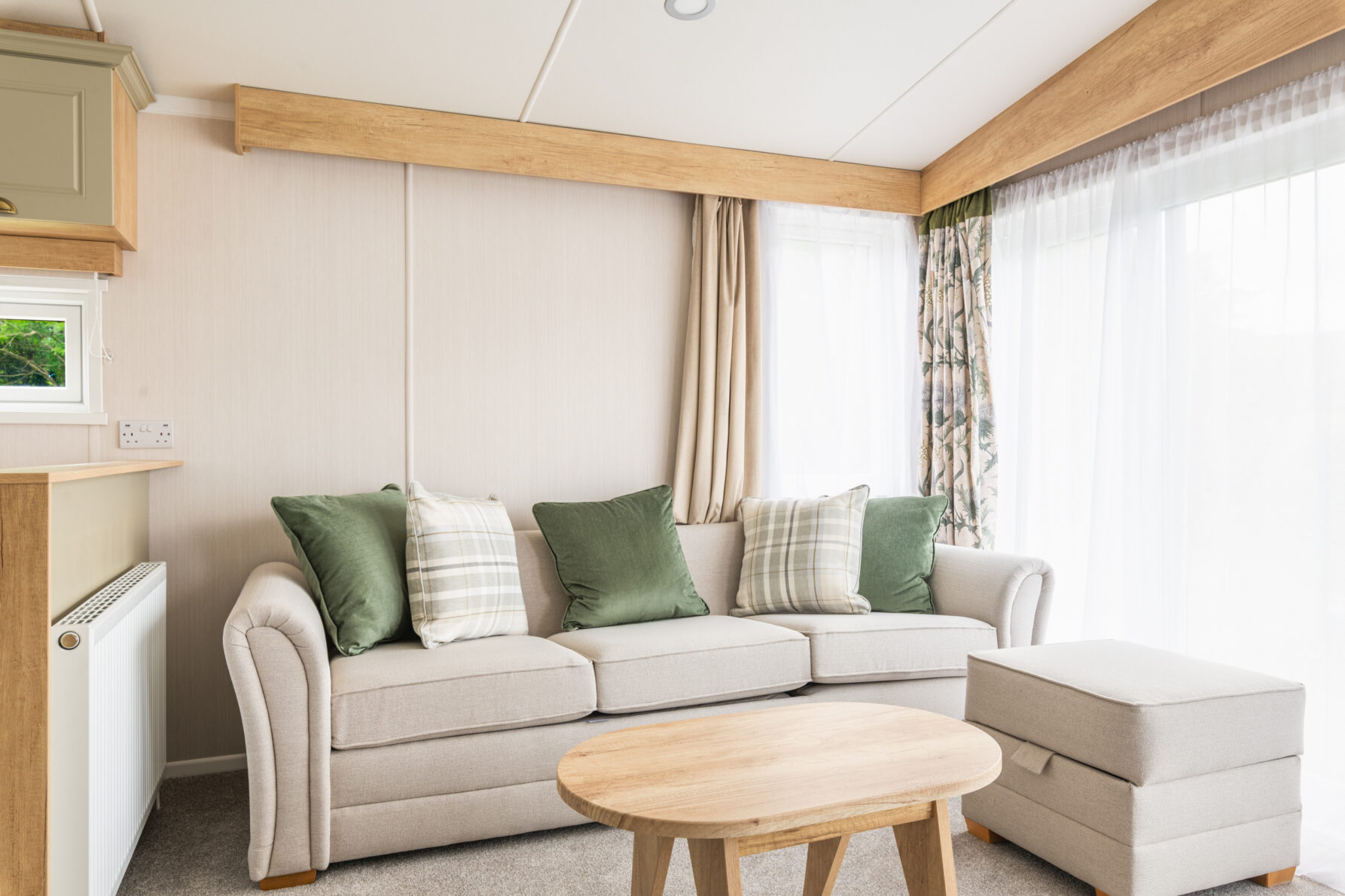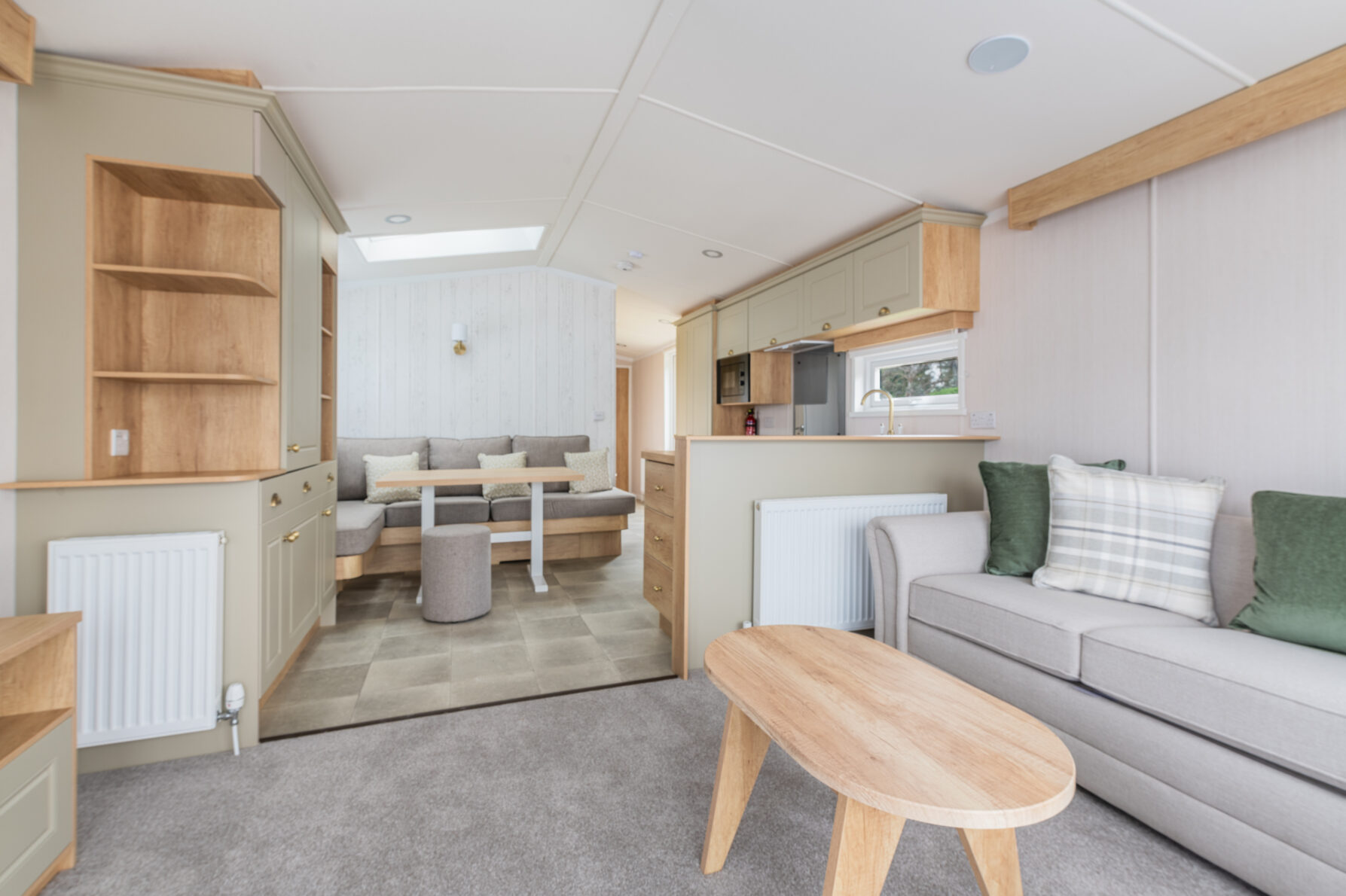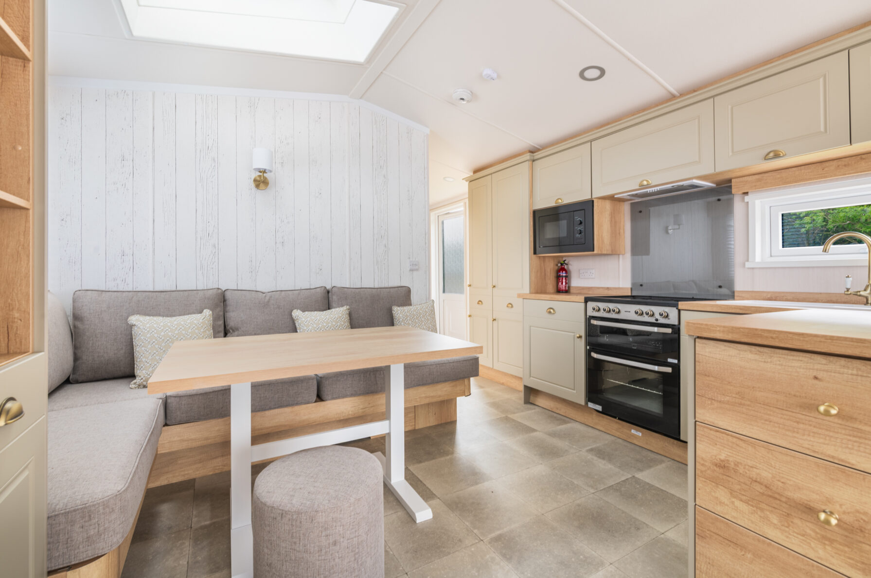 The Swift Moselle Lodge has a gorgeous country theme running through the holiday home with lovely woods and brass handles creating a real cottage theme. Calming colours mean you relax as soon as you walk in.