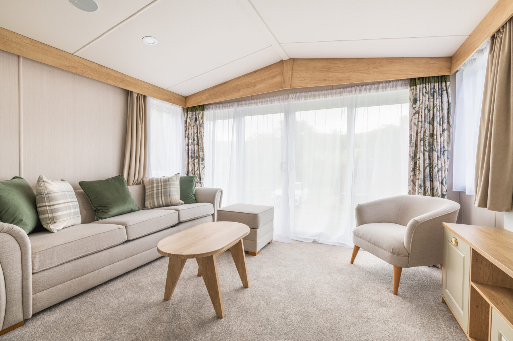 The holiday home is 40 foot long and 13 foot wide and you really can notice that extra space. The master bedroom has an ensuite shower, and there is a twin bedded room along with family bathroom featuring a bath with shower over.