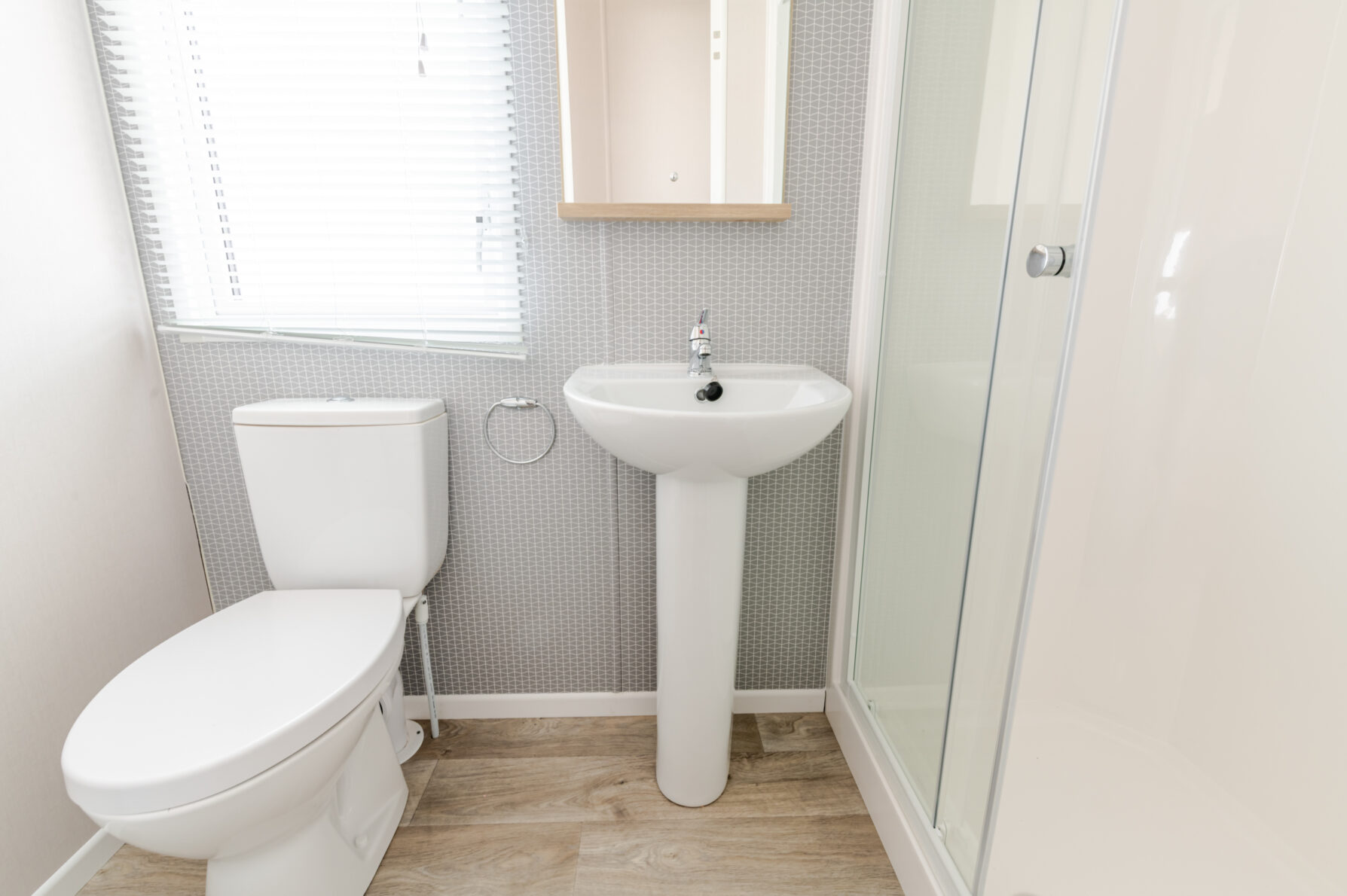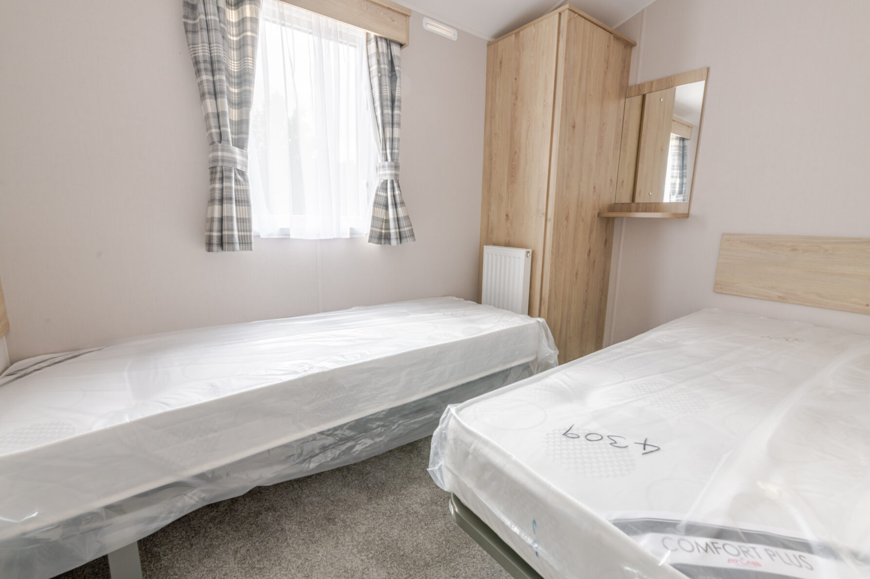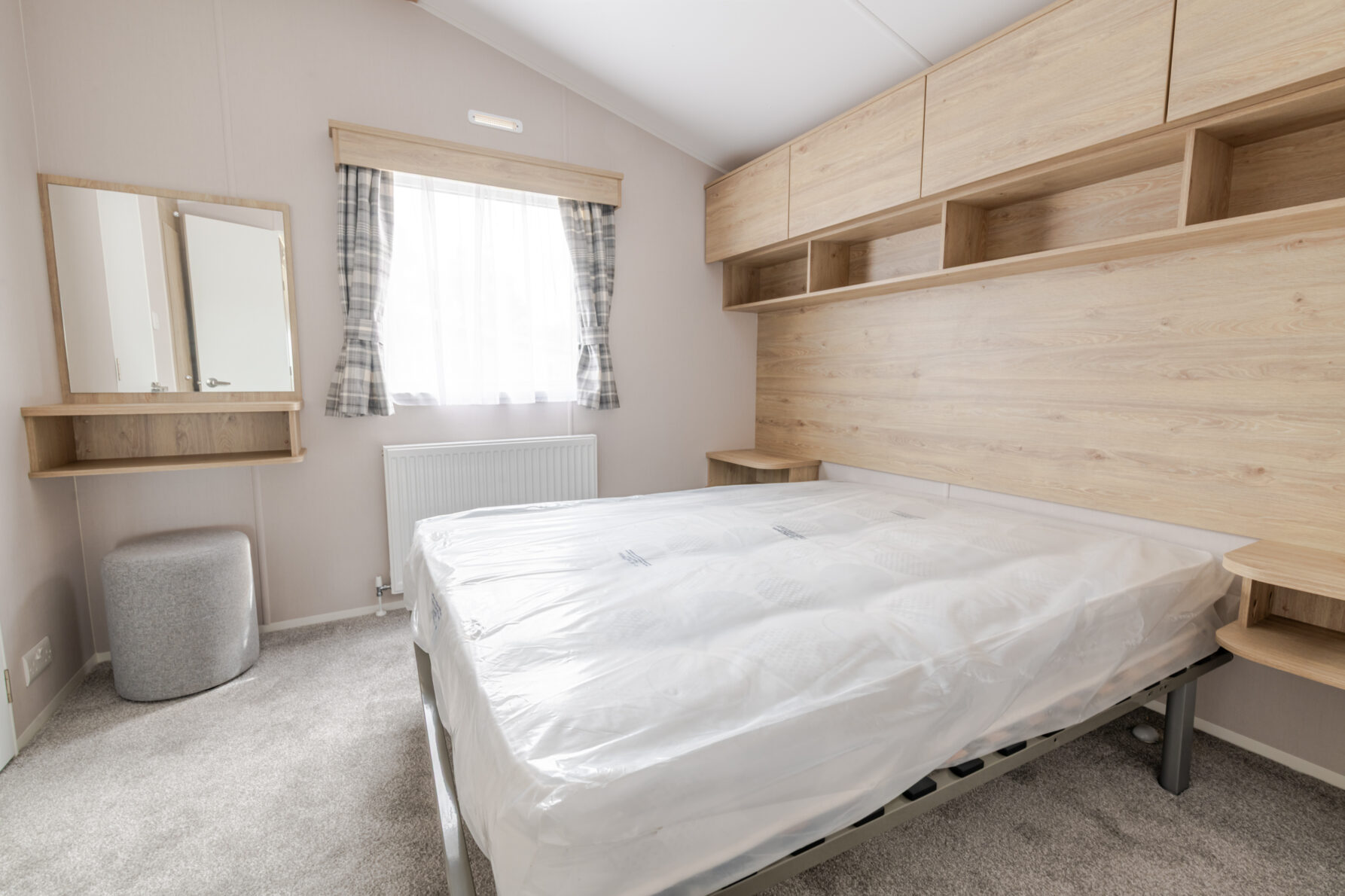 The holiday home has two bedrooms, the master bedroom has overhead storage and wardrobe space and an ensuite WC while bedroom two has two single beds, and there is a family shower room.