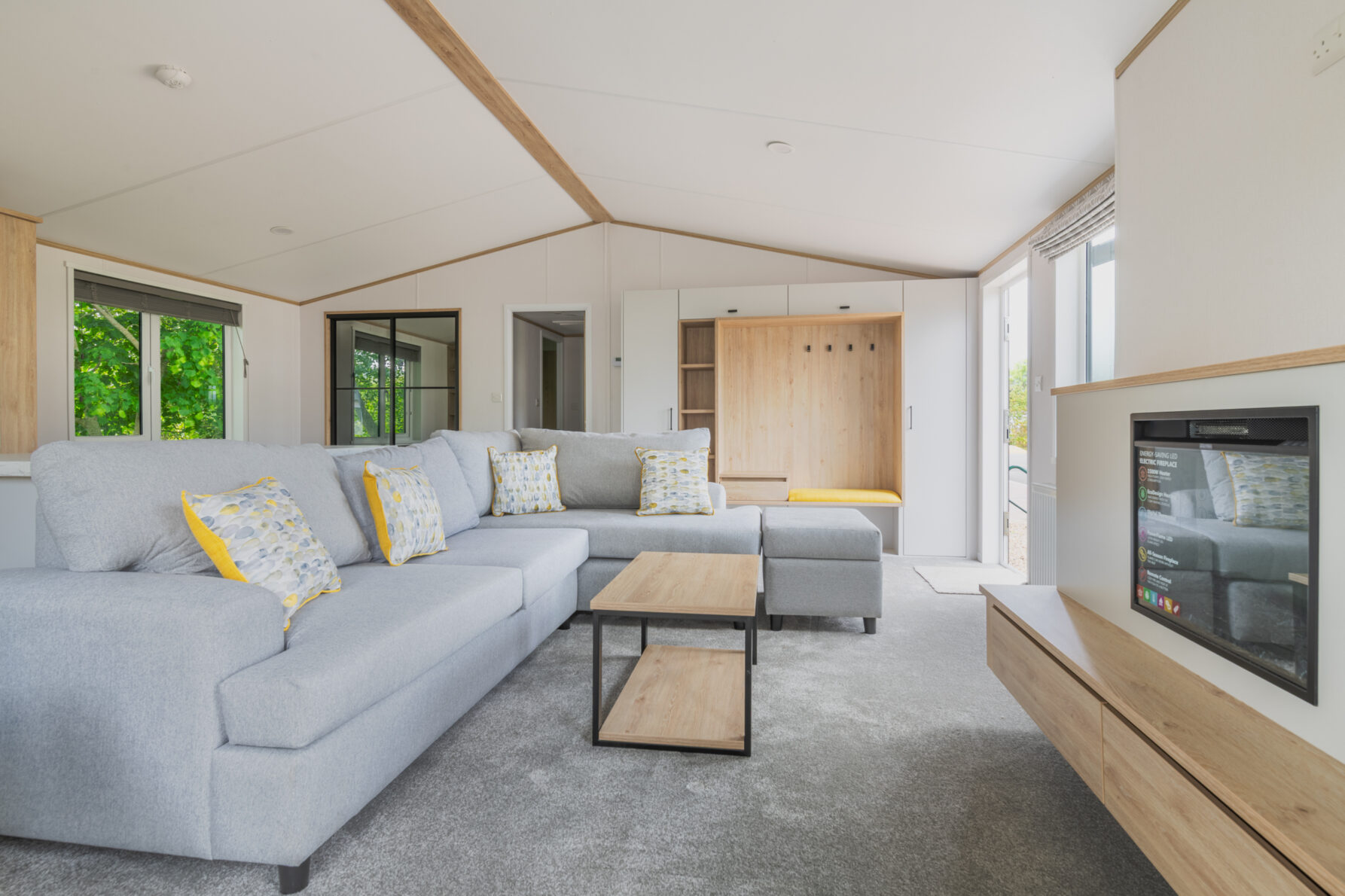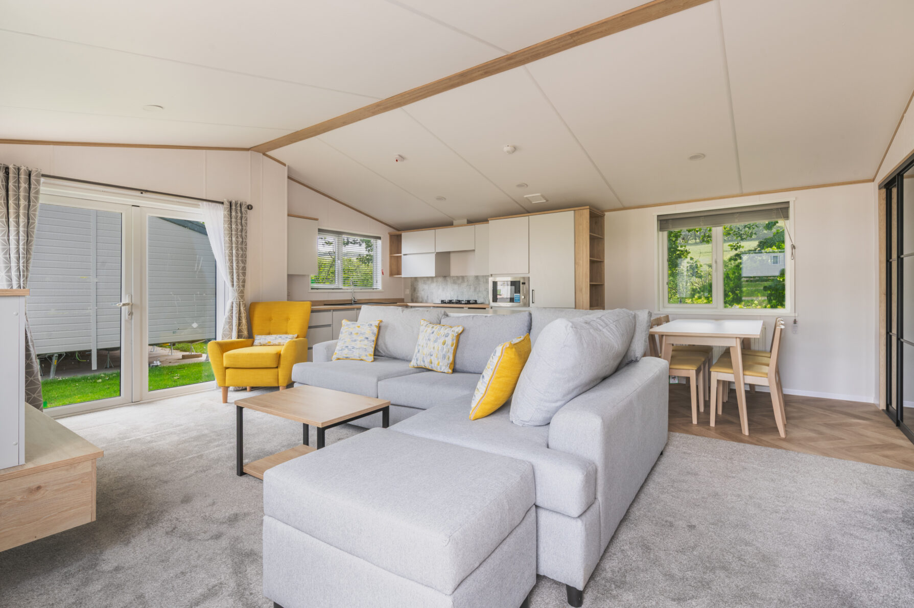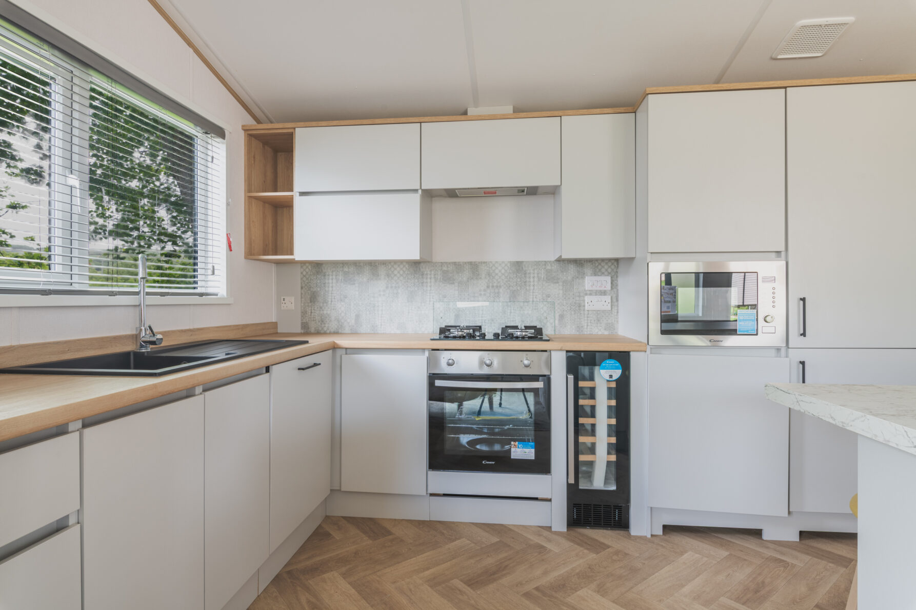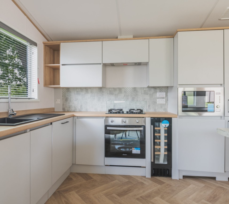 The new Oakwood Lodge is designed and presented with luxury living and quiet elegance throughout, the Oakwood combines clever design to extract the maximum in convenience and practicality. The open lounge area features a large L-shape sofa and a freestanding armchair, the kitchen adjacent is again filled with all the essential appliances needed for the long family getaways, whilst being open and spacious.