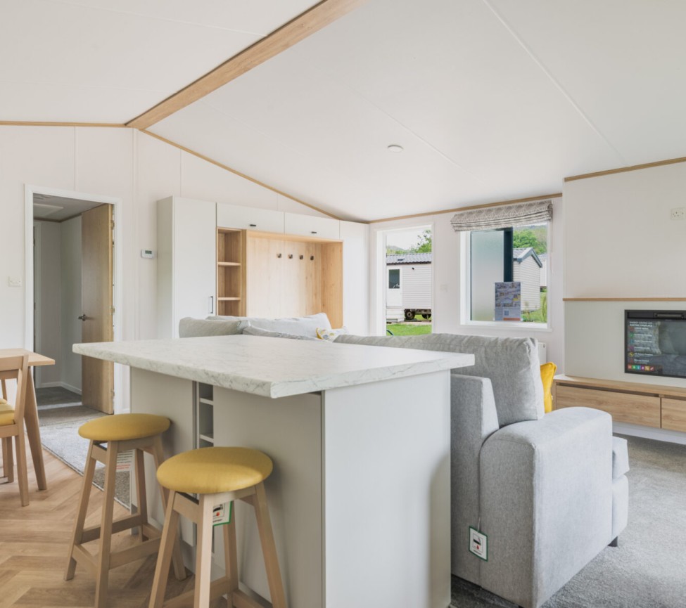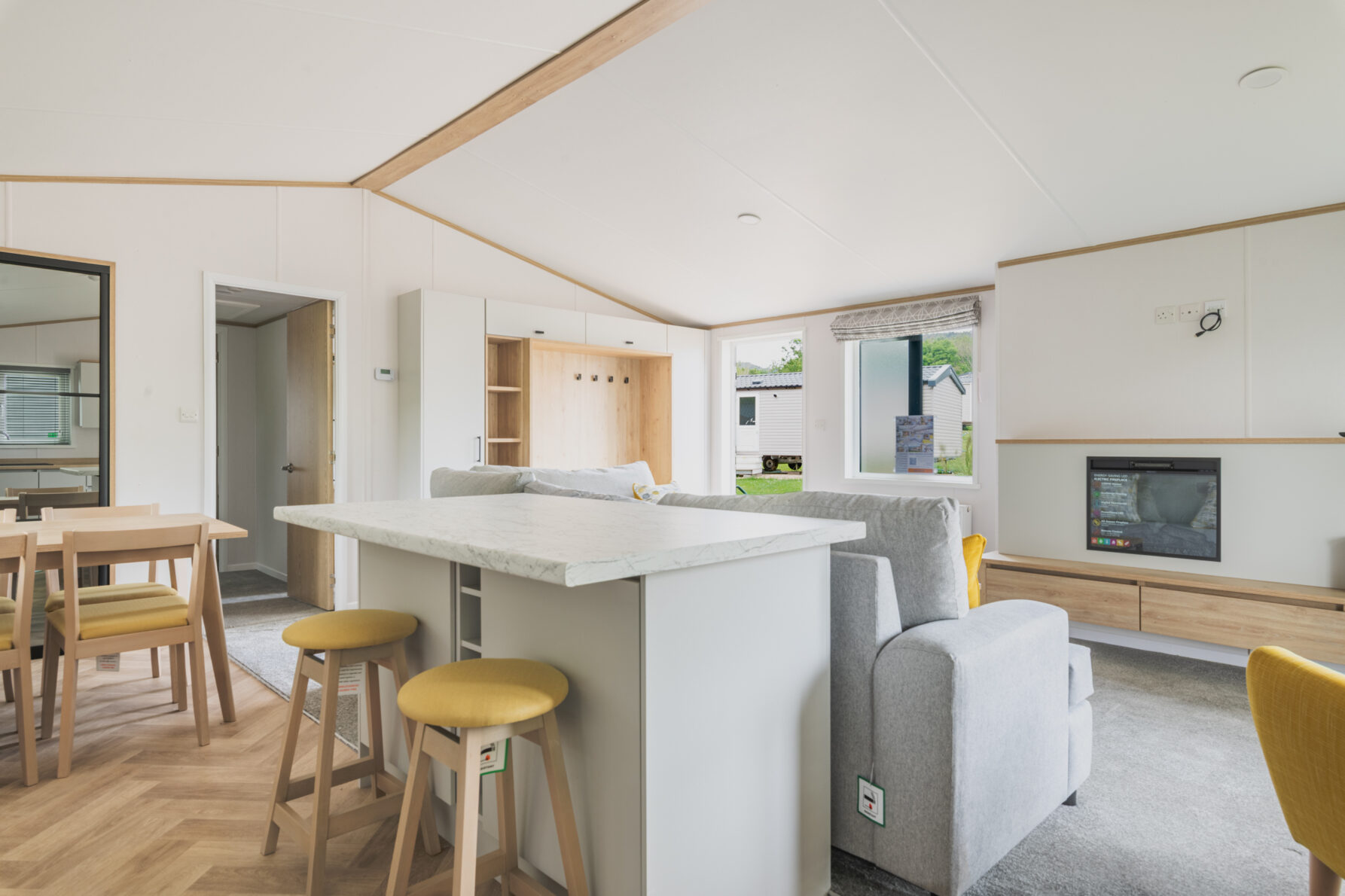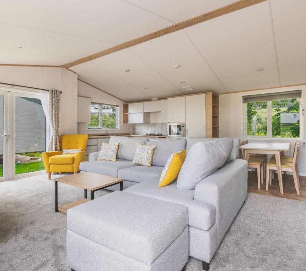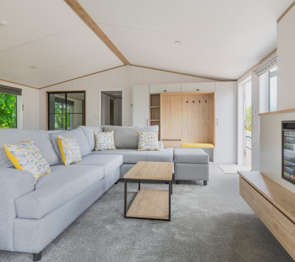 The new Oakwood Lodge is designed and presented with luxury living and quiet elegance throughout, the Oakwood combines clever design to extract the maximum in convenience and practicality. The open lounge area features a large L-shape sofa and a freestanding armchair, the kitchen adjacent is again filled with all the essential appliances needed for the long family getaways, whilst being open and spacious.