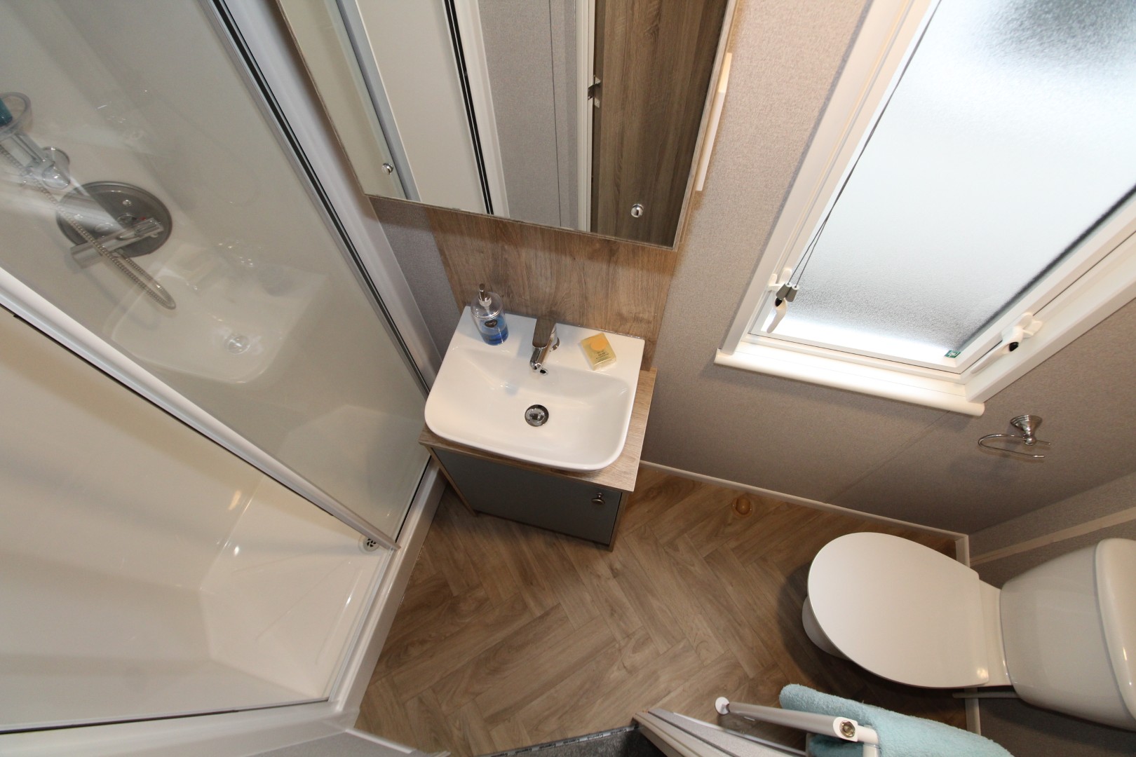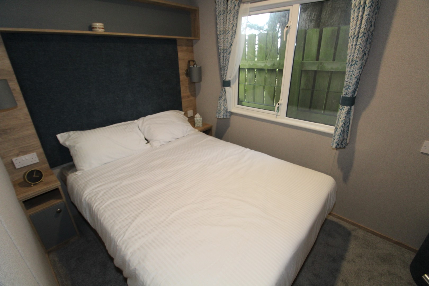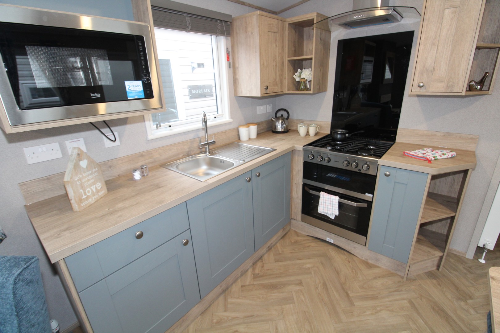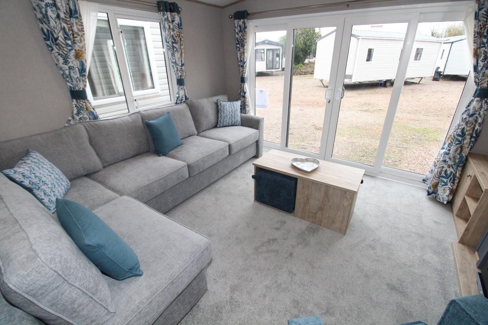 Inside, the Wimbledon feels light and inviting thanks to its large windows, soft colour scheme and thoughtful layout. The lounge is centred around a luxury wood burner-style feature fire with plenty of comfortable seating and a USB socket for easy device charging. Carpet underlay throughout adds warmth and stylish light fittings with low-energy bulbs help to create a cosy evening atmosphere.