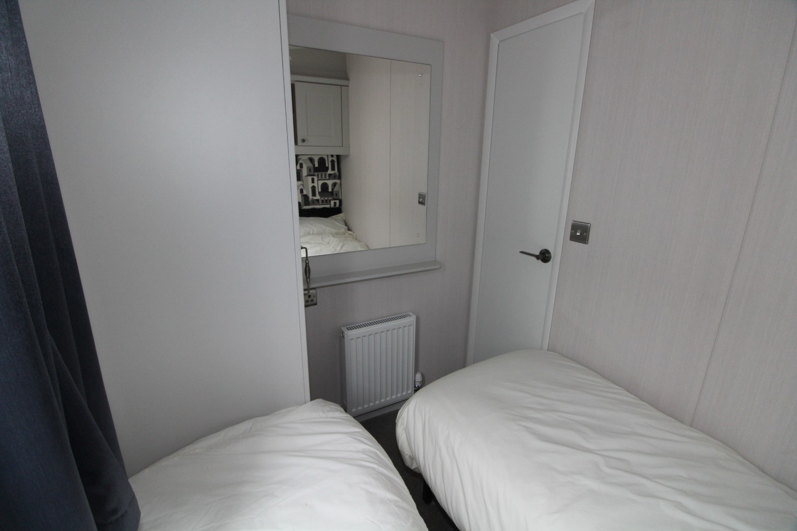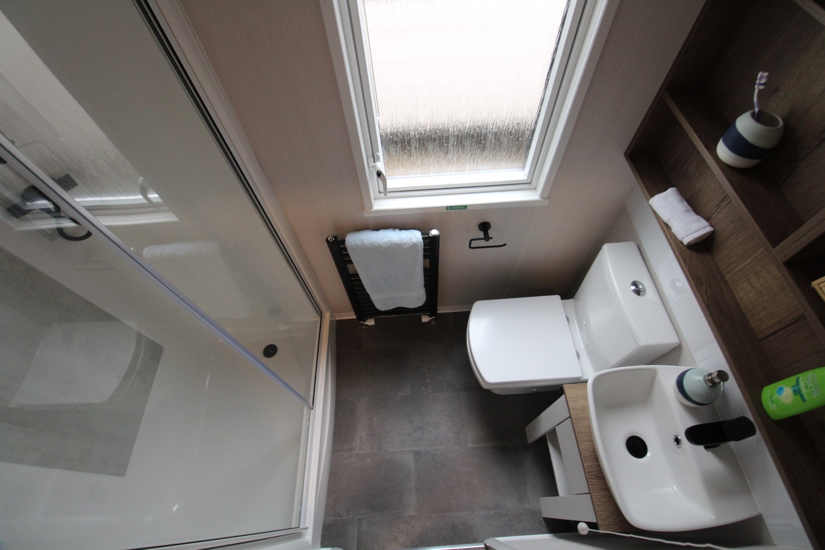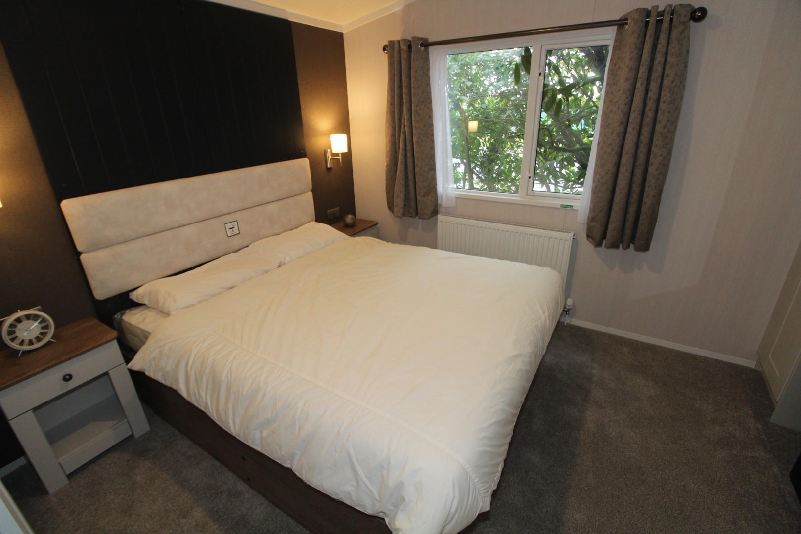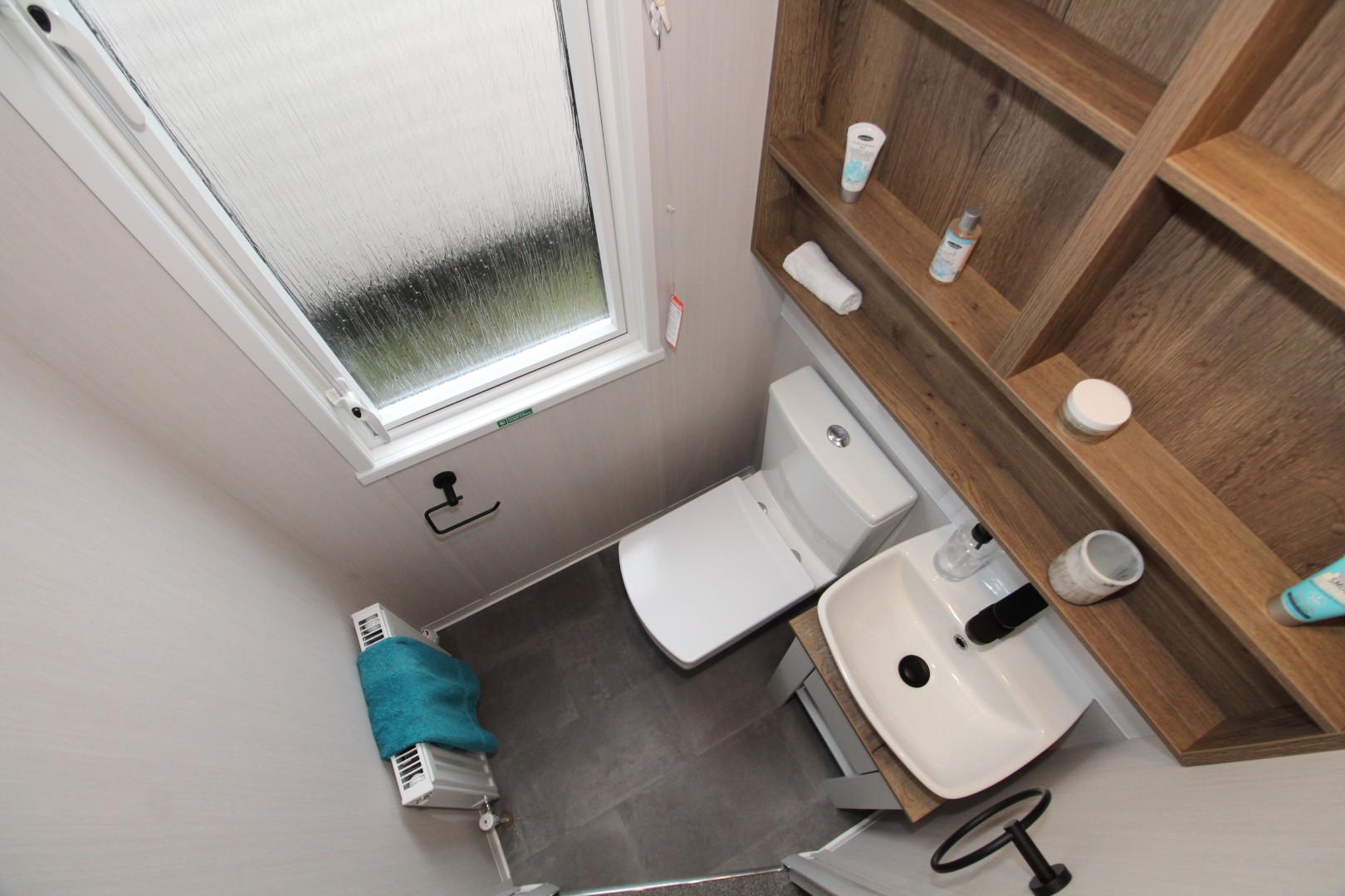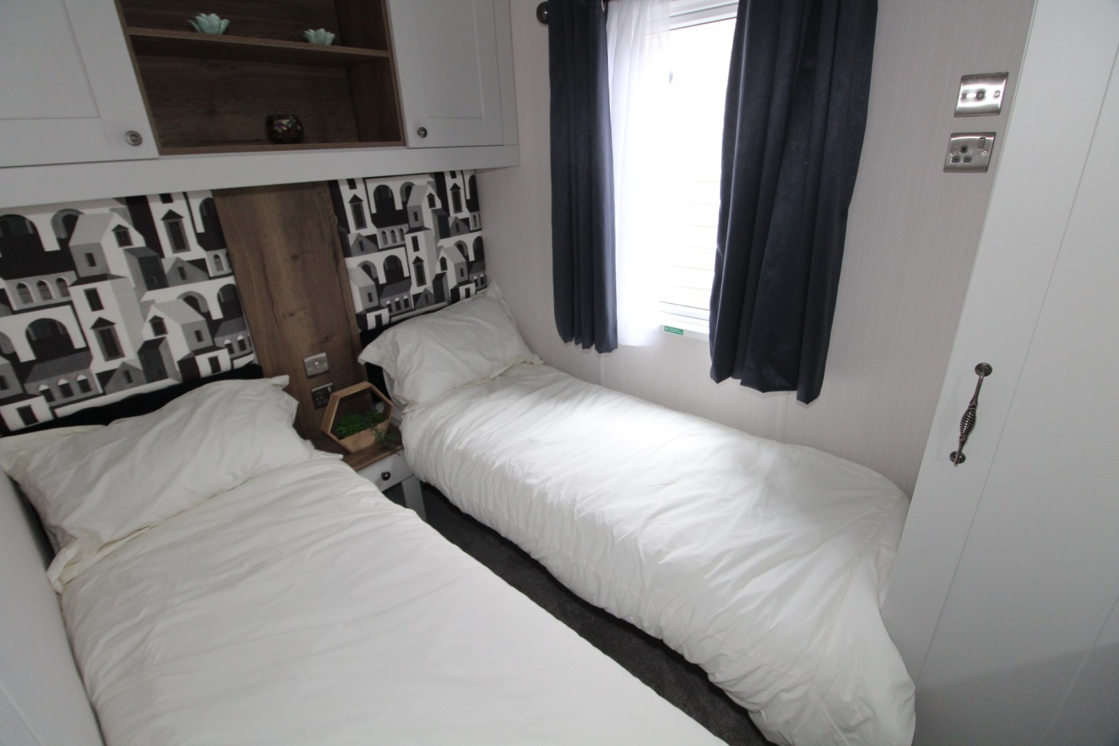 The stunning exterior features Sandy Beige aluminium cladding, LED front bargeboard lighting and full heigh front aspect windows that fill the spacious lounge with plenty of natural light. Inside, you'll find elegant Provenza flooring, Tobacco Halifax oak woodgrain with Indigo accents, and the sophisticated Town House soft furnishing scheme, creating a calm and contemporary space to relax in.