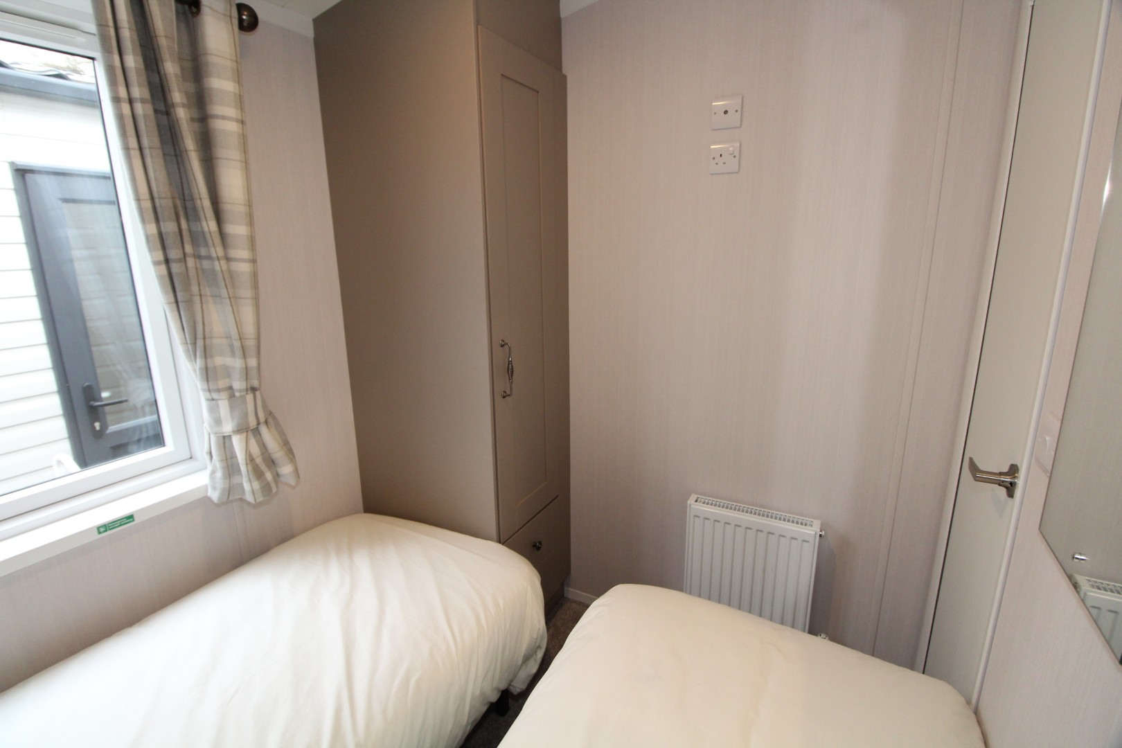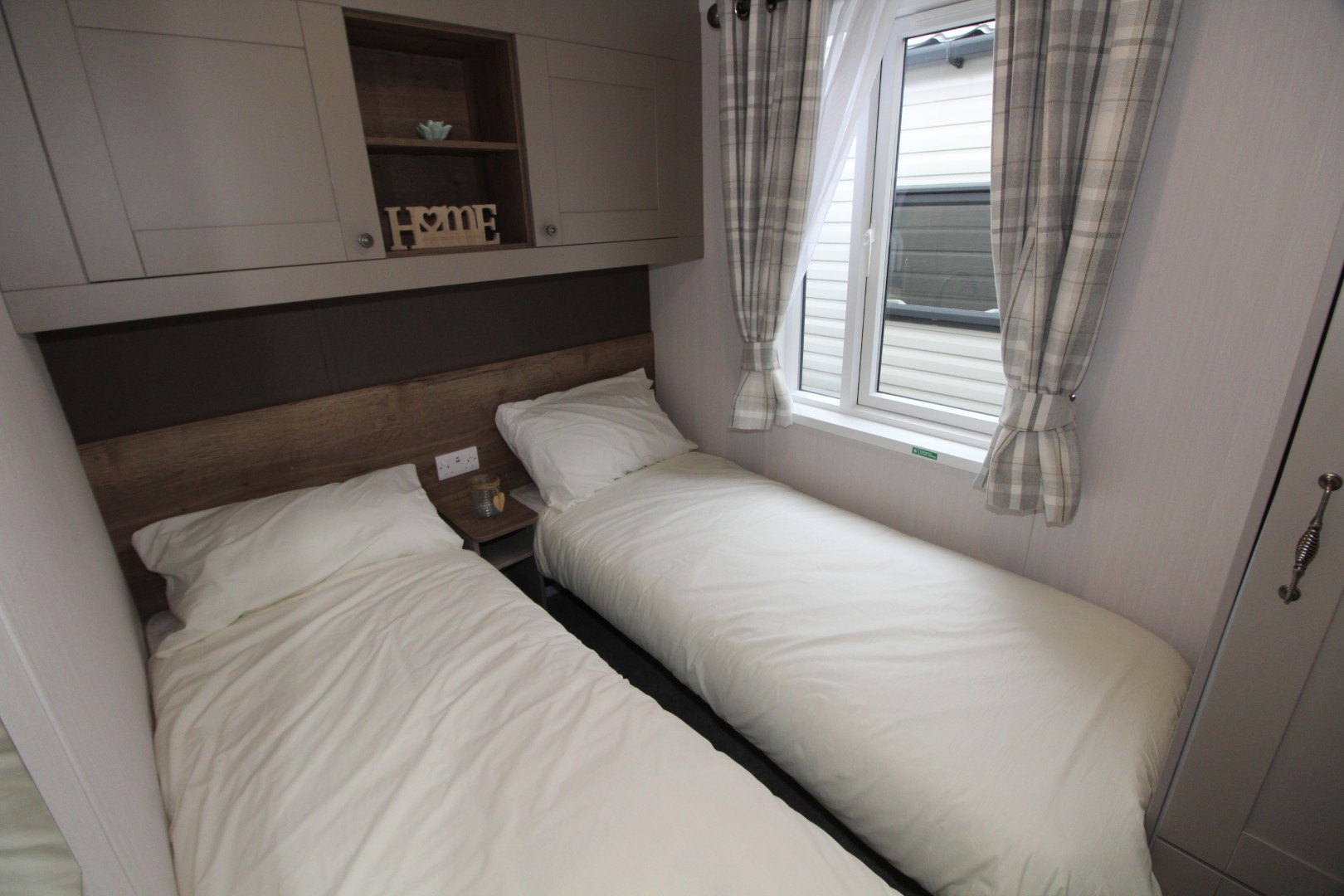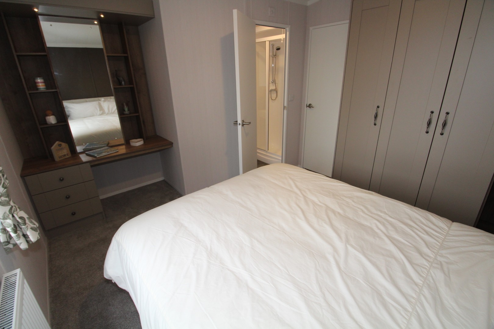 Every detail in the Morlaix Lodge has been designed with comfort in mind. The bedrooms offer a peaceful haven, featuring king-size beds with padded headboards and Duvalay Alba-Ortho mattresses, while twin bedrooms include 3ft-wide beds (except in the 13ft model) and generous storage space. Each bedroom is complemented by double wardrobes, vanity areas with mirrors and elegant soft furnishings to create a truly restful retreat.